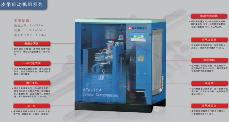 漢鐘牌AE6系列電動皮帶式靜音節(jié)能福建廈門螺桿式空壓機