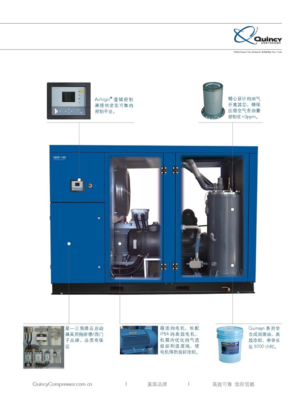 昆西QGD/QGV系列螺桿式空氣壓縮機110-200kW